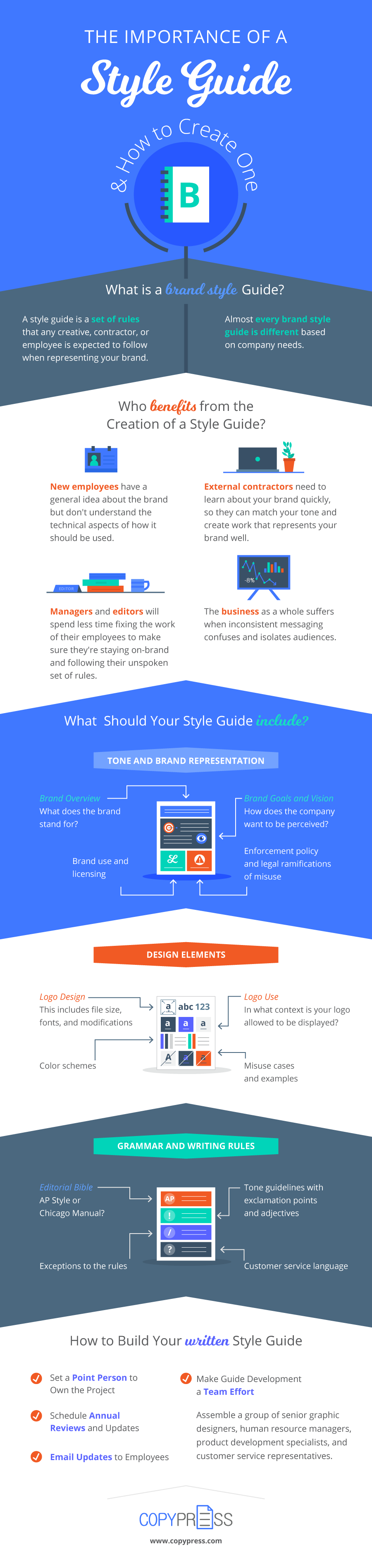 Reading this white paper published by CopyPress will teach you how to make a style guide that works for your site. The more you know before you start the writing process, the less time you will spend on your style guide project.